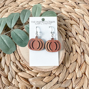 These simple pumpkin earrings are the perfect accessory for your fall outfit! Cut from all natural cedar wood, this limited edition design is exclusive to The Inspired Grain.