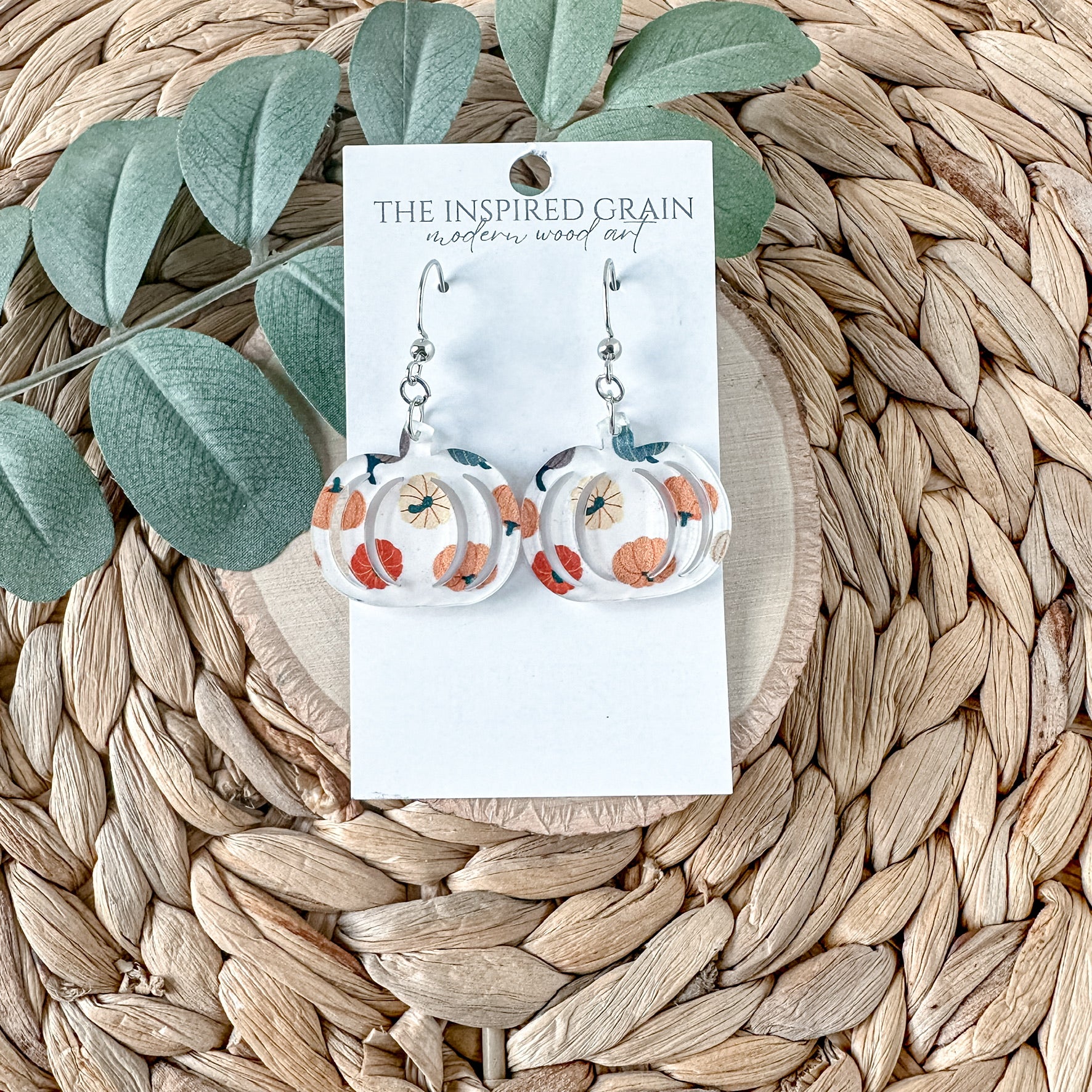 These simple pumpkin earrings are the perfect accessory for your fall outfit! Cut from patterned acrylic, this limited edition design is exclusive to The Inspired Grain.