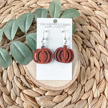 These simple pumpkin earrings are the perfect accessory for your fall outfit! Cut from all natural paduk wood, this limited edition design is exclusive to The Inspired Grain.